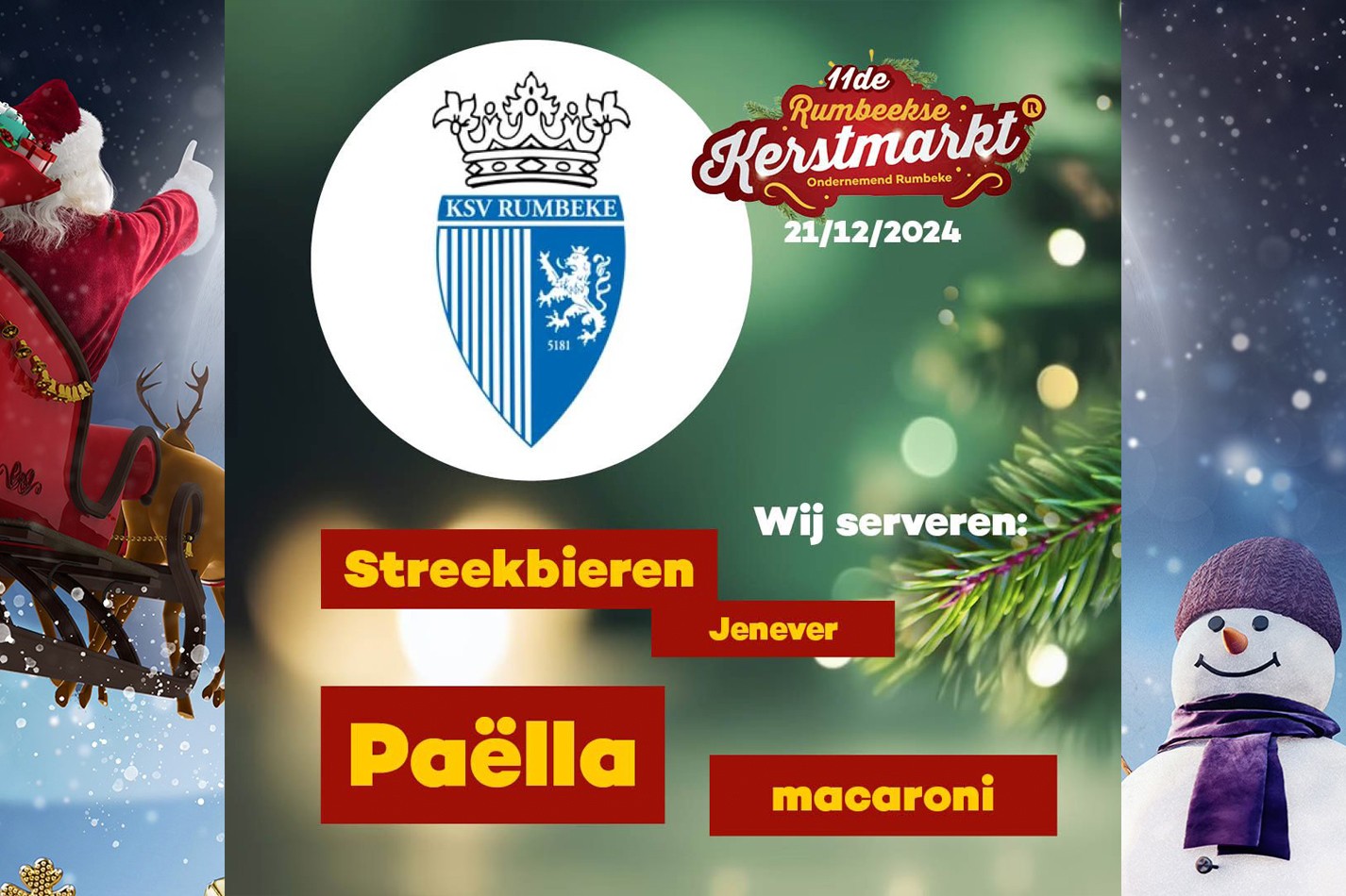 KSV Rumbeke zal ook aanwezig zijn met een Kerstchalet waar we heerlijke Paëlla, macaroni en een selectie van smaakvolle streekbieren en jenevers serveren.