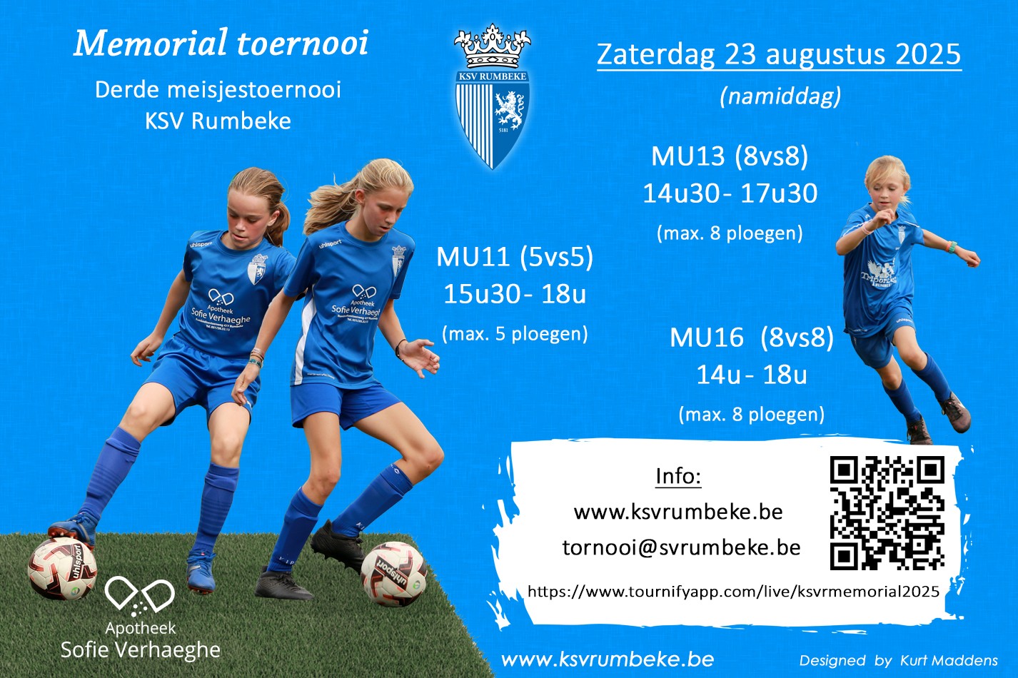 Op zaterdag 23 augustus 2025 is er het derde meisjestornooi van KSV Rumbeke voor MU11, MU13 en MU16 op het Rumbeekse Sportpark.