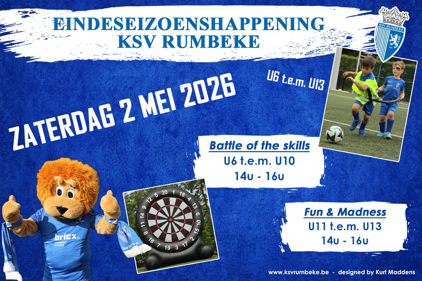 Speel je bij de U6 tot en met de U13? Kom dan een namiddag vol plezier en actie beleven, met tal van springkastelen en minigames!
