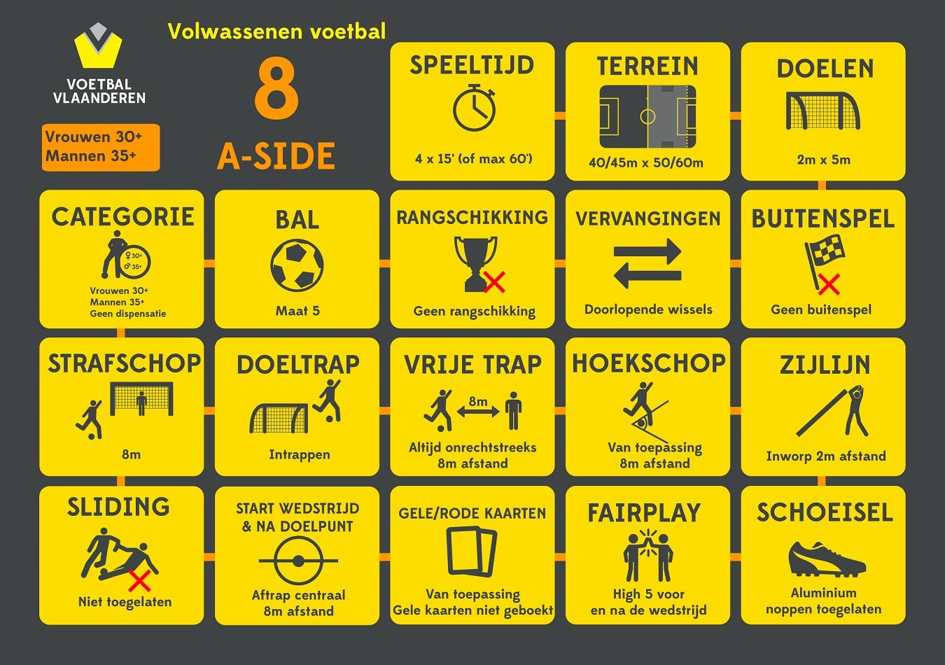Voetbal Vlaanderen publiceerde onlangs de nieuwe spelregels voor het nieuwe seizoen 2023-2024. Sla geen stappen over in de ontwikkeling van de jeugd en speel de juiste formats! Fun & formation, dat is de beste garantie op spelplezier. De spelers en speelsters staan centraal.