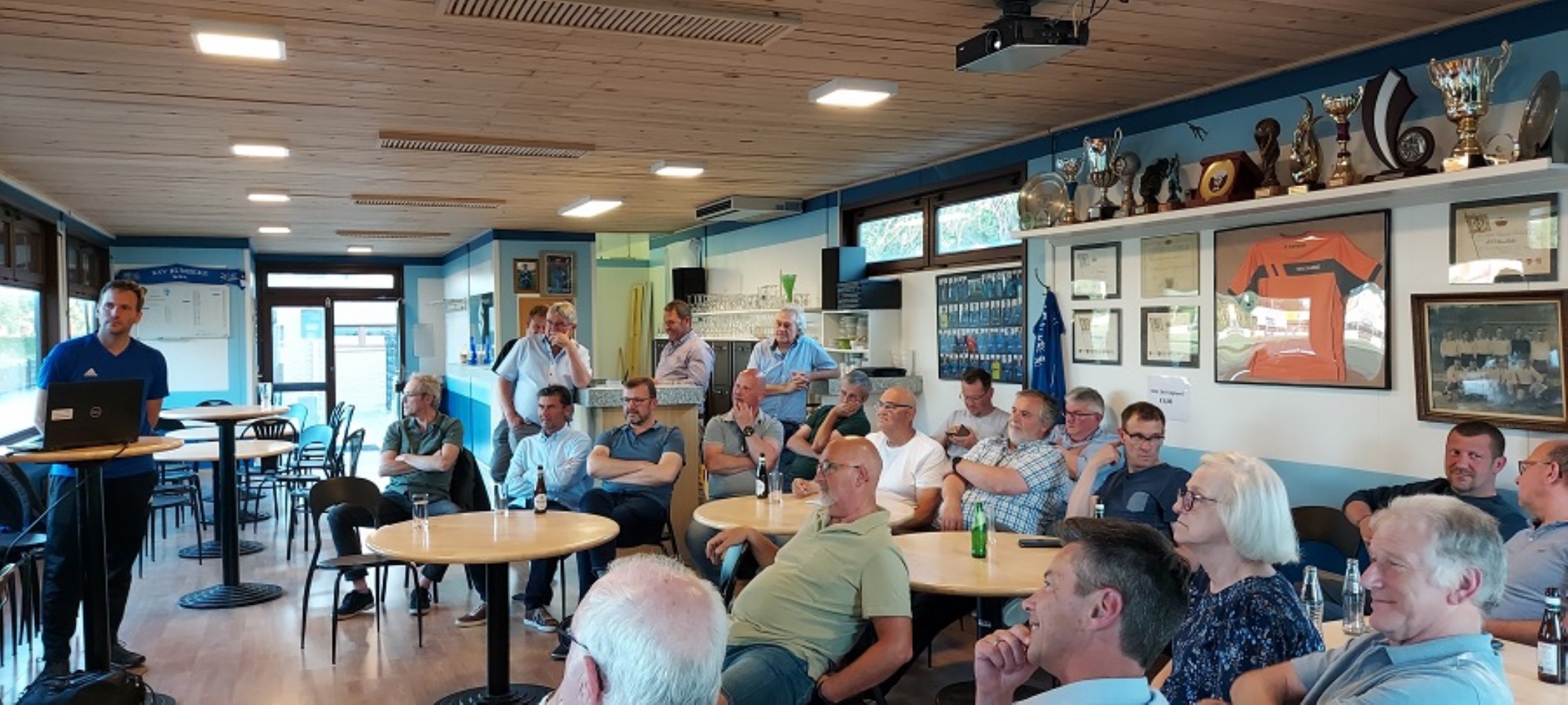 Vorige week donderdag 2 juni verwelkomden we Bart van den Bergh van Voetbal Vlaanderen rond de nieuwe format 8-a-side. Dames 30+ en heren 35+ kunnen hun energie kwijt op het voetbalveld in een 8 tegen 8 format.