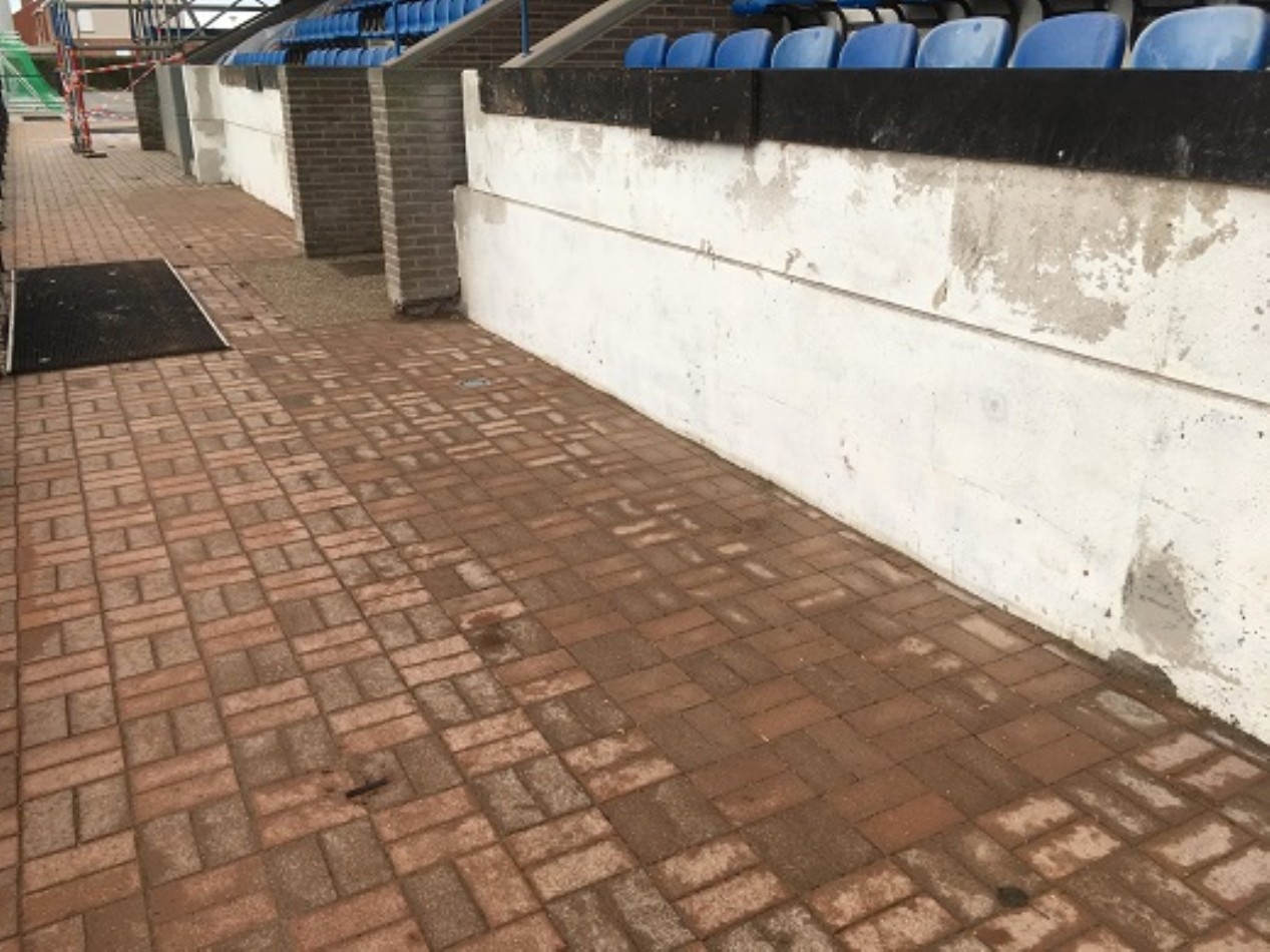 Afgelopen dagen, weken zijn de dug outs aan de zittibune afgebroken en de 2 putten waar de banken in gevestigd waren zijn nu volledig gegooid en toegelegd met klinkers. Er blijft nu niets meer van over van de oude dug outs. Dus nu is er meer plaats voor de zittribune om onze KSVR-spelers aan te moedigen bij de wedstrijden.