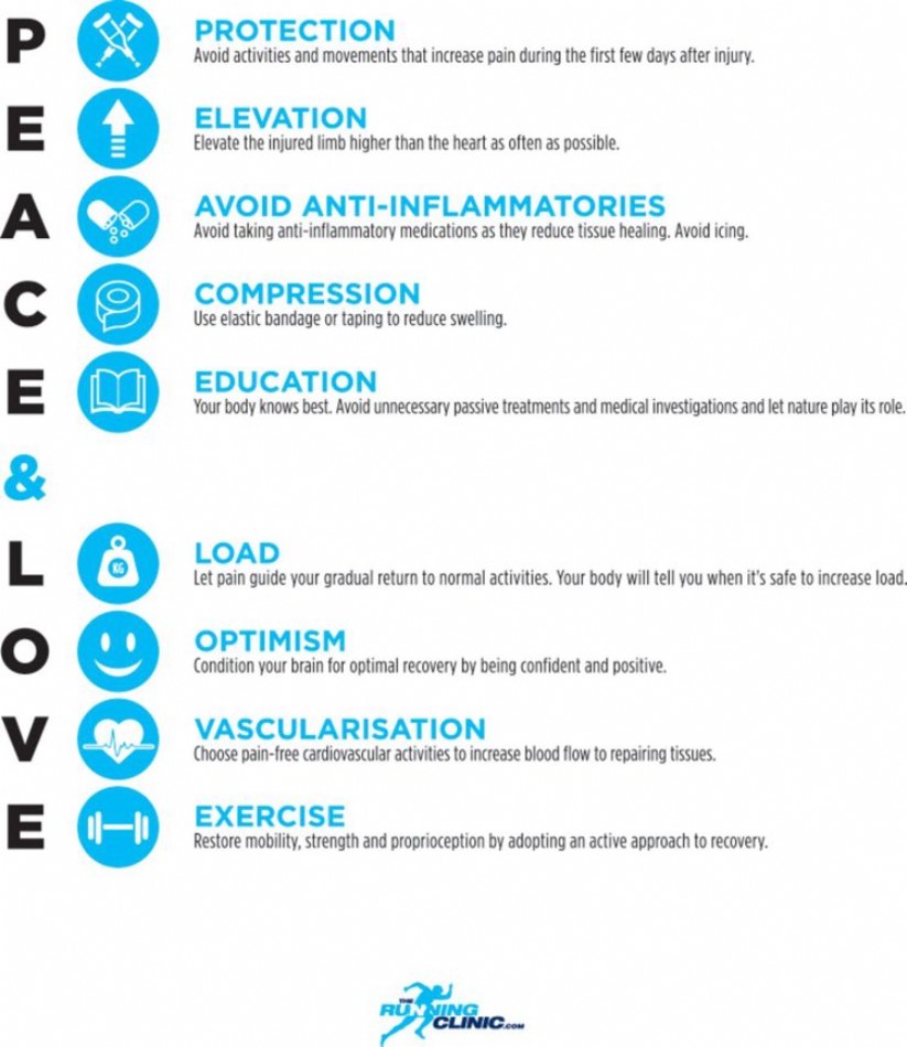 Wanneer iemand zijn voet omslaat gaan we gebruik maken van het acroniem ‘peace & love’