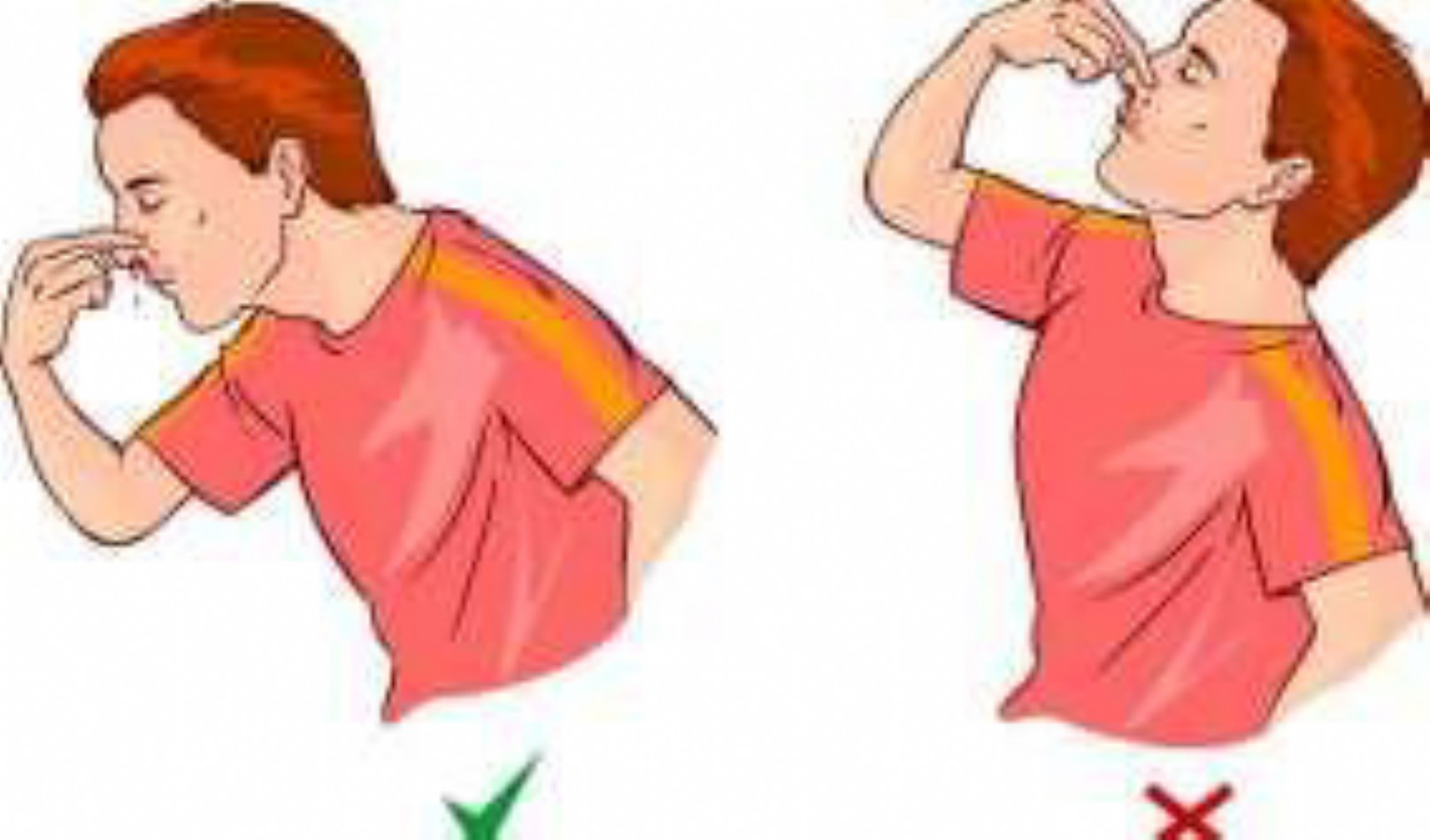 We beginnen met de neus eenmalig te snuiten. Daarna de neusvleugels dichtduwen. Hierbij is het belangrijk dat je net onder het neusbeen gaat gaan duwen. Dit doe je best in de leeshouding. Het hoofd dus naar voor buigen alsof je een boek aan het lezen bent. Als de bloedneus komt door een trauma, is het ook aangeraden om ijs op de neus te leggen.
