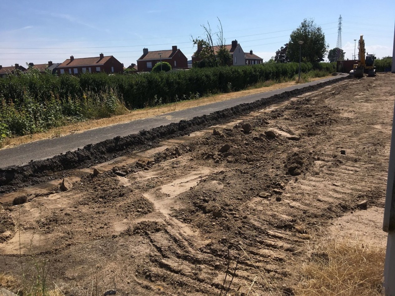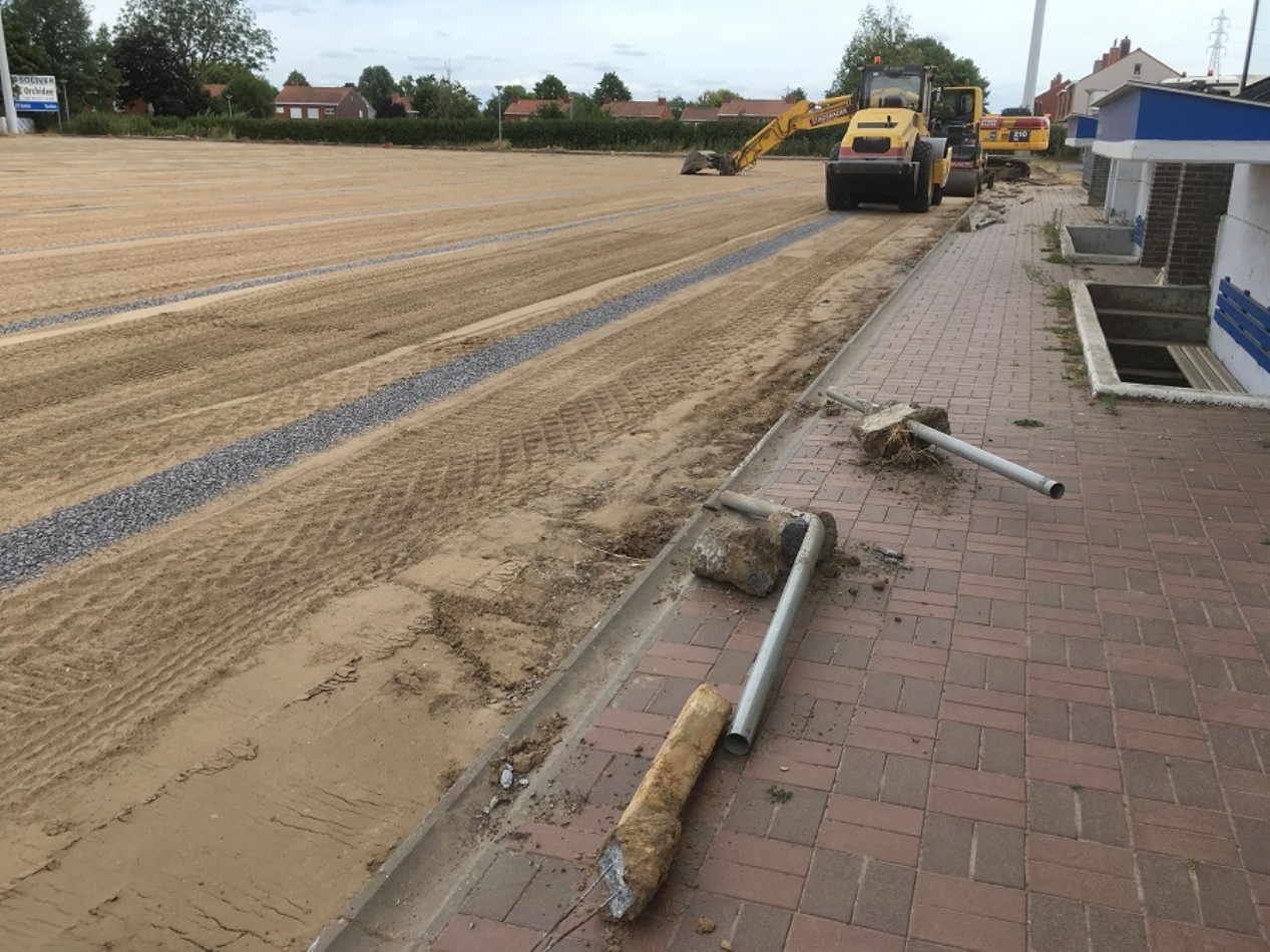 Intussen zijn de werken al 2 weken bezig en er is al één en ander veranderd. Eind vorige week op vrijdag 6 juli lag alles klaar om de nieuwe drainage te leggen.