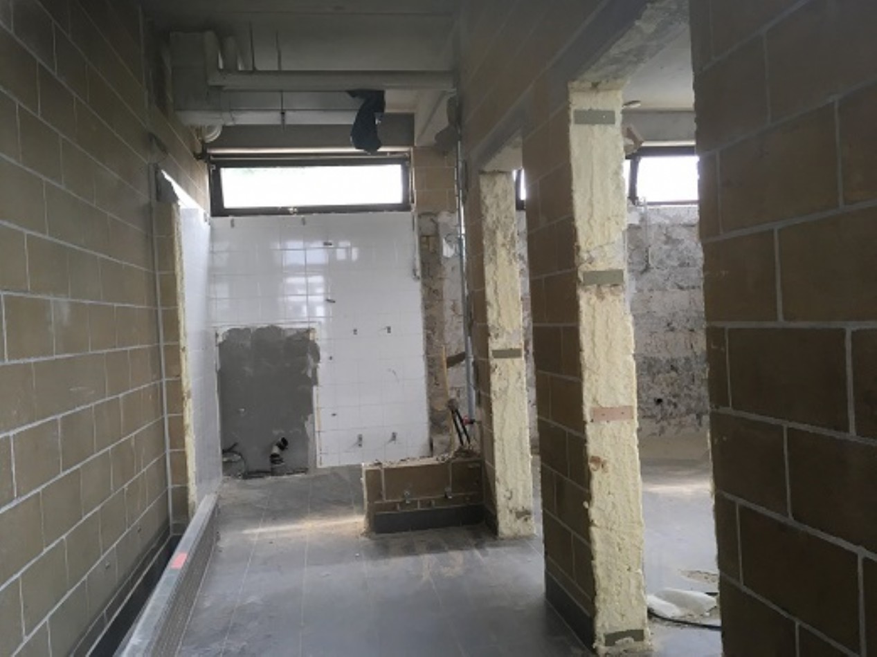 Sinds enkele dagen, weken zijn de werken gestart voor extra nieuwe kleedkamers aan te bouwen aan de bestaande kleedkamers. Er komen 2 nieuwe extra kleedkamers bij de 6 kleedkamers die we al hadden.
