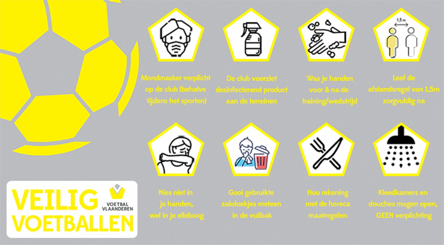 Het lijkt erop dat het Coronavirus nog een tijdje blijft hangen. We geven jullie graag de algemene competitieregels, de laatste nieuwsupdates, veiligheidsvoorschriften, coronaproof oefenstof en handige tools om veilig te blijven voetballen.