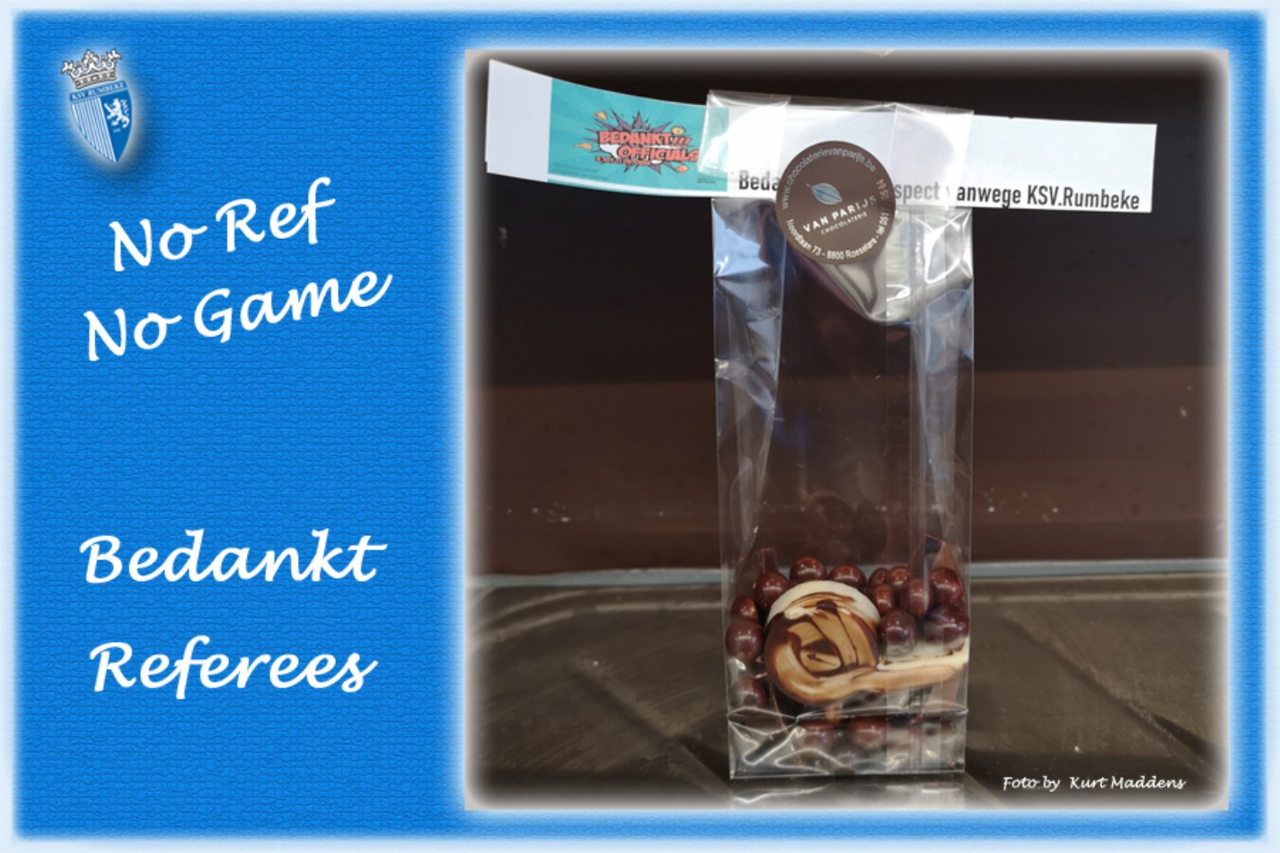 KSV Rumbeke en vooral Marc (referee ambassador) willen dan ook alle scheidsrechters bedanken voor hun inzet tijdens iedere wedstrijd want No Ref, No Game , respect, dank U wel Referees !!!