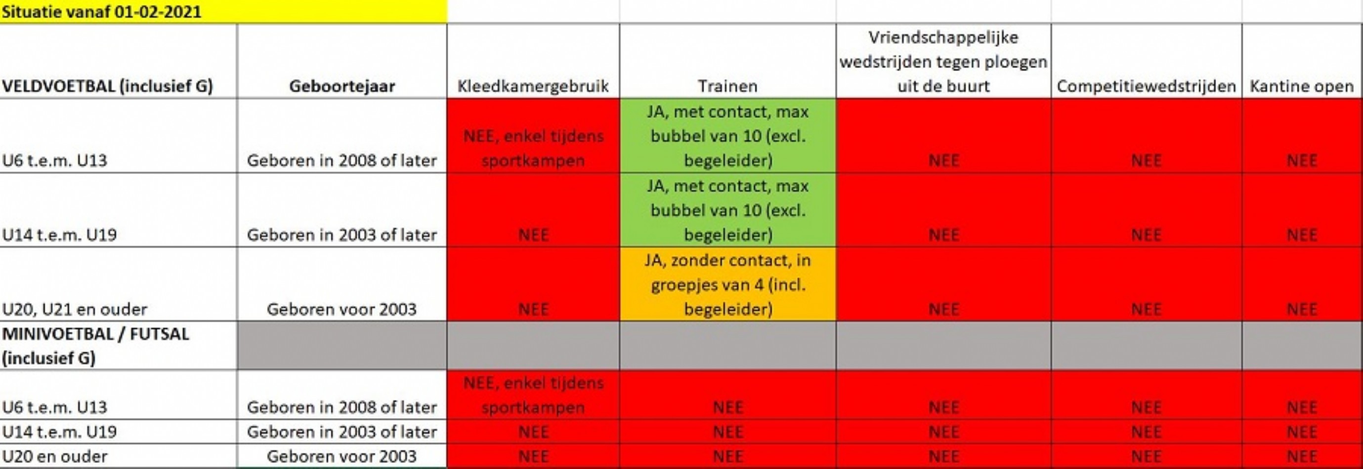 - Vanaf maandag 01-02-2021 kunnen deze categorieën enkel nog outdoor trainen, in een bubbel van 10.