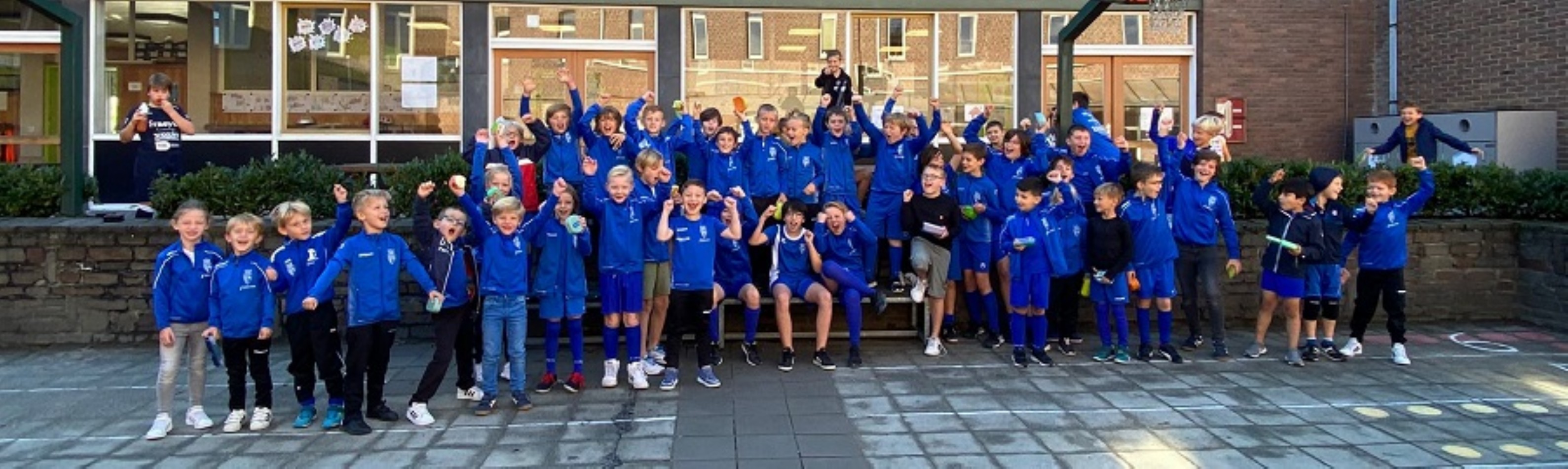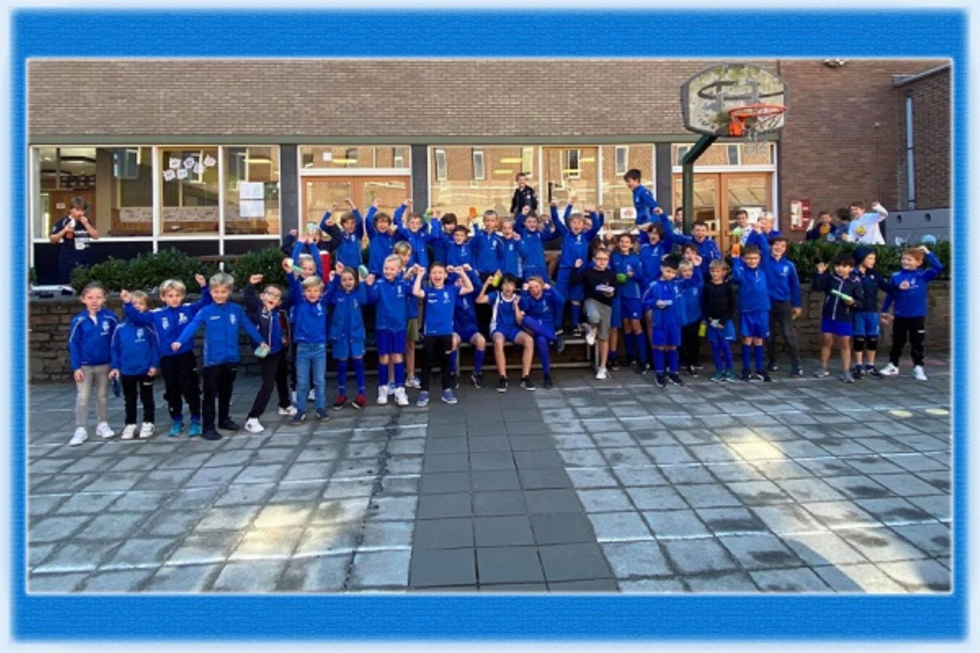 De speelkoer en klassen kleurden talrijk blauw, de kleur van KSV Rumbeke. Vele jonge voetballertjes liepen vandaag met fierheid rond in hun school met hun training, t-shirt,... van KSV Rumbeke. Hieronder een foto van onze jonge getalenteerde voetballertjes in school "De Verrekijker".