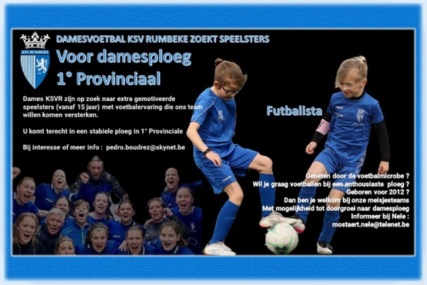 Dames KSVR zijn op zoek naar extra gemotiveerde speelsters (vanaf 15 jaar) met voetbalervaring die ons team willen komen versterken