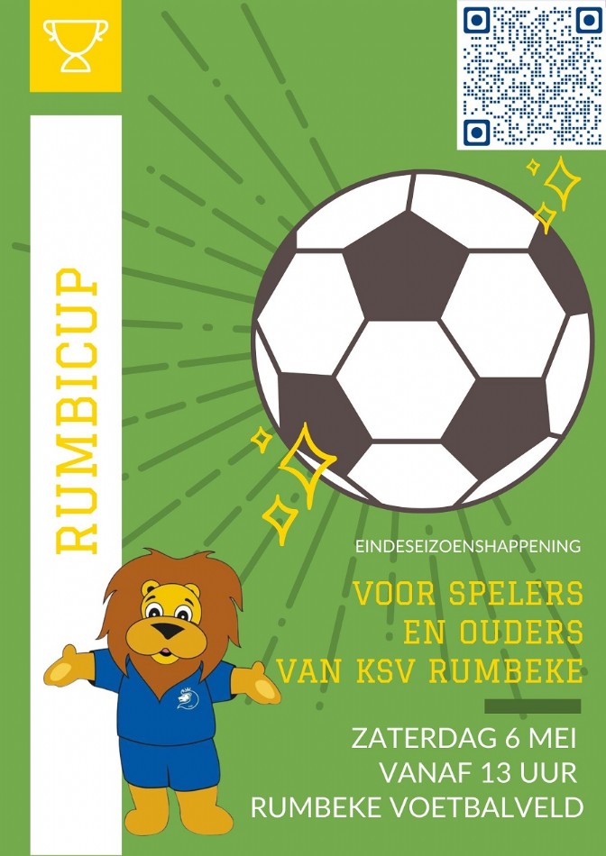 Vier het einde van het seizoen met al je vrienden op zaterdag 6 mei tijdens de eindeseizoenshappening van KSV Rumbeke Kom voor de aftrap vanaf 13 uur naar de voetbalvelden van Rumbeke oen help onze mascotte Rumbi opwarmen voor ons avondtoernooi: de RumbiCup.