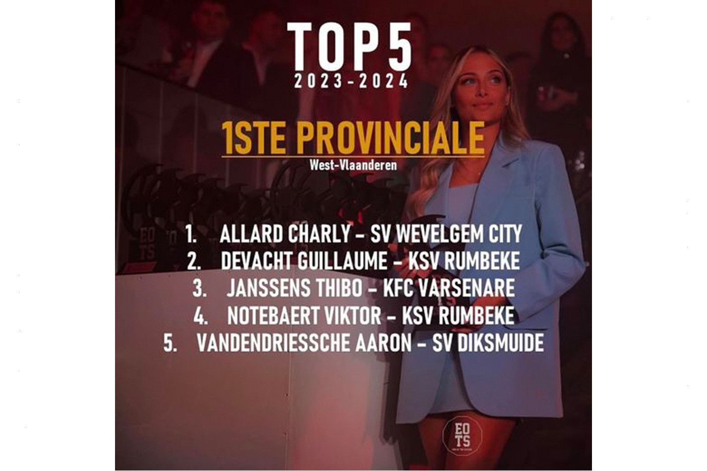 In het seizoen 2023-2024 behoren twee spelers van KSV Rumbeke tot de top 5 in de eerste provinciale West-Vlaanderen.