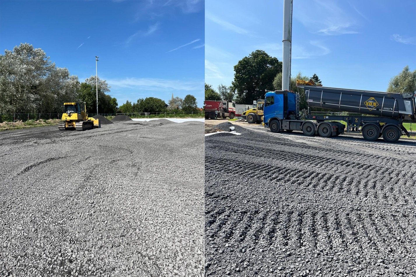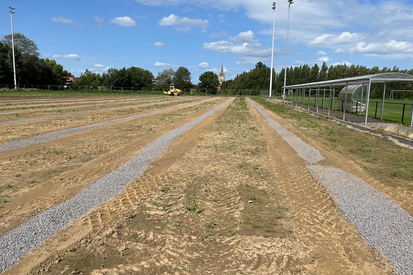 De werkzaamheden aan ons tweede kunstgrasveld zijn na een pauze vanwege de vakantieperiode terug hervat.