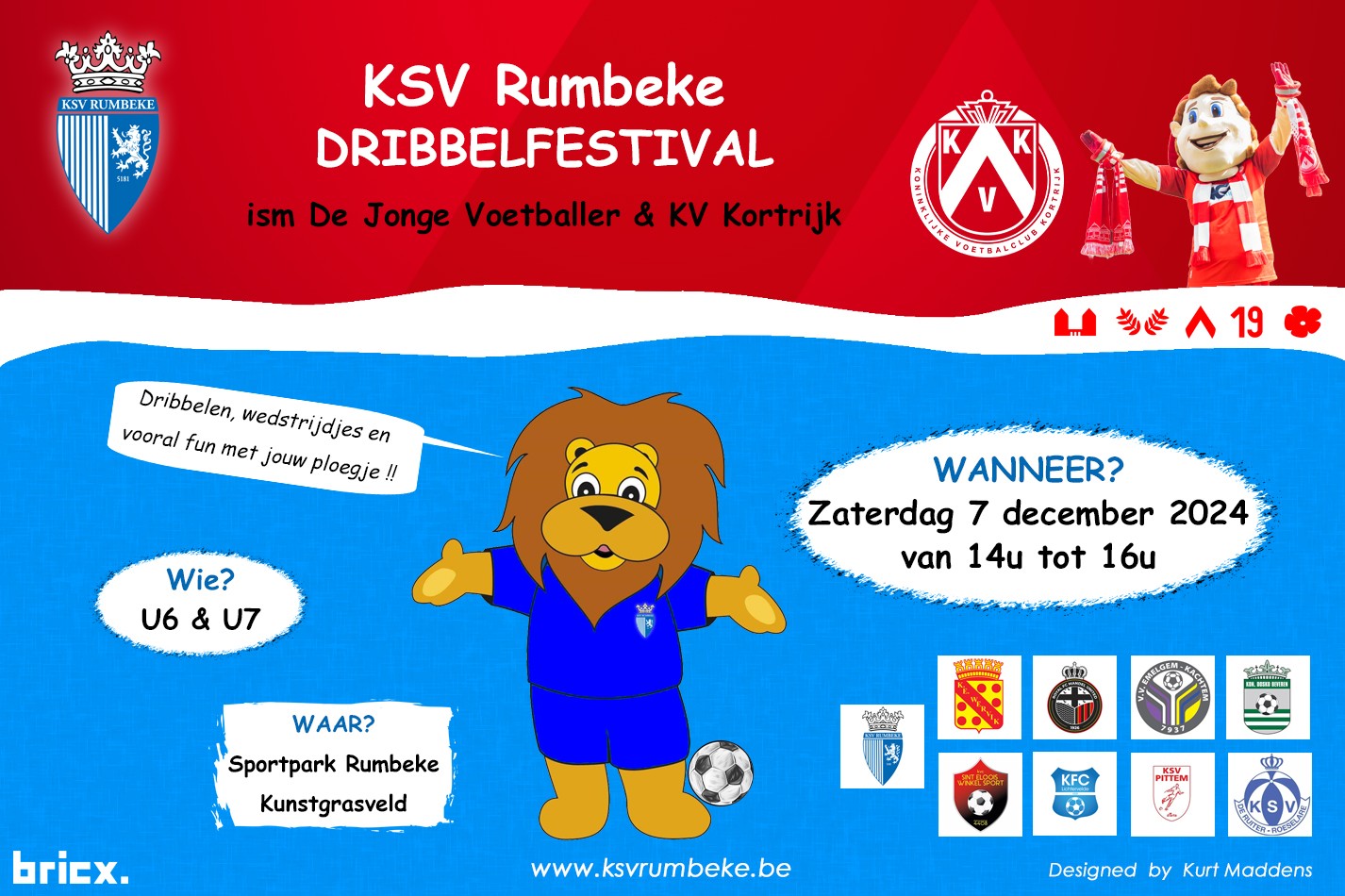 Op zaterdag 7 december 2024 vindt het Dribbelfestival voor U6 en U7 plaats op het Sportpark van Rumbeke.