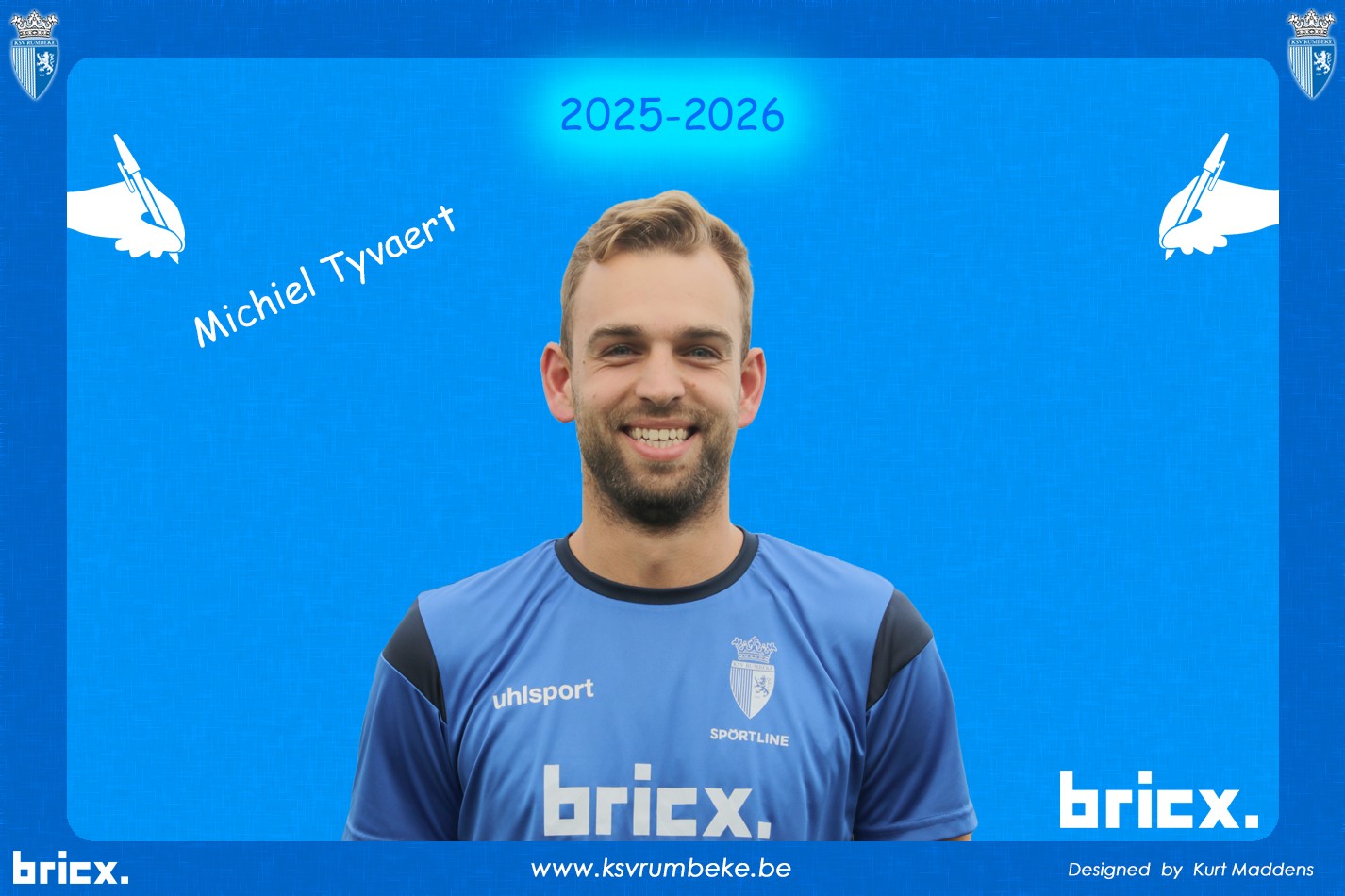 Michiel Tyvaert, de ouderdomsdeken van KSVR, heeft duidelijk een goed gevoel bij KSV Rumbeke, aangezien hij een achtste seizoen bij KSVR zal spelen. Michiel woont slechts op een korte afstand van de Rumbeekse Arena. Ahja, wie kan beweren dat hij zo'n schitterend veld in zijn achtertuin heeft, ewel den Michiel kan da zeggen! Een ware clubman die zijn passie voor KSVR heeft verloren, en hij heeft een volledig blauw-wit hart.