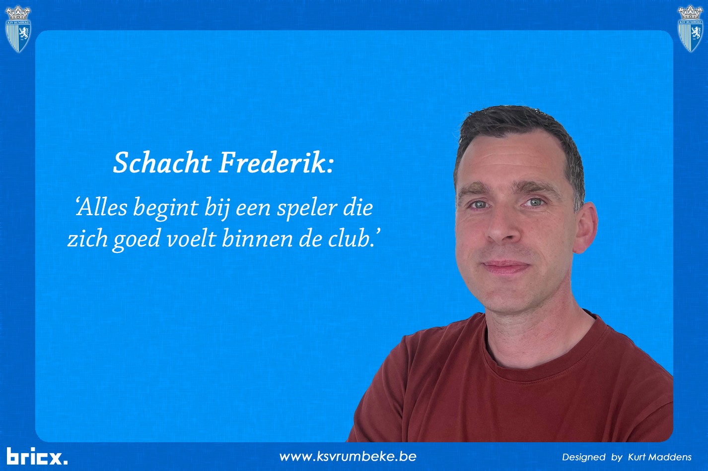 Voor het seizoen 2025-2026 verwelkomt KSV Rumbeke drie nieuwe jeugdtrainers als versterking van het trainerskorps. Eén van hen is de 42-jarige Schacht Frederik uit Izegem. Hij is zelfstandig ondernemer in allerhande drukwerk.