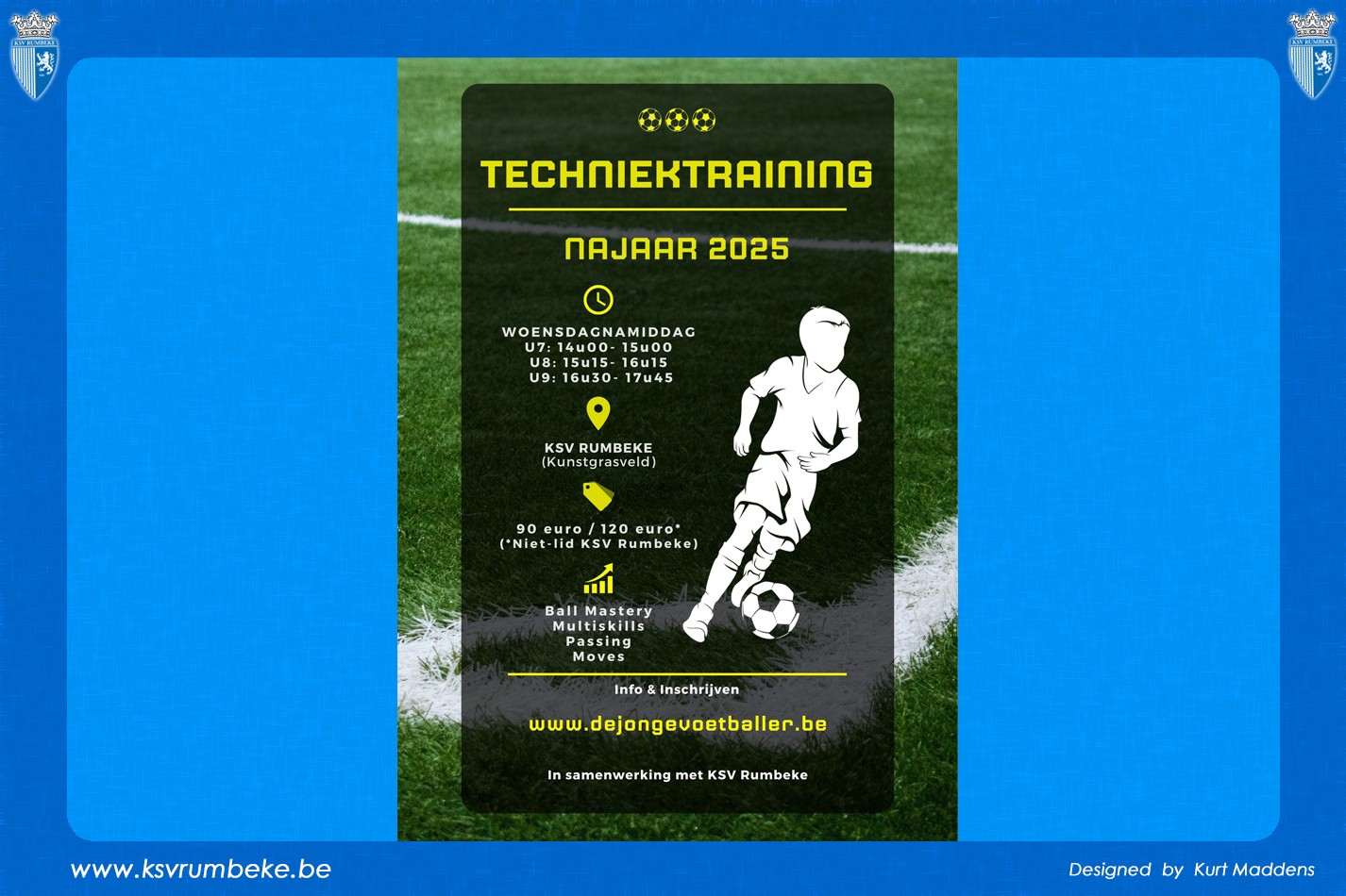 Komend seizoen bieden we vanuit KSV Rumbeke opnieuw extra techniektraining aan voor de spelers U7, U8 & U9. Dit voor zowel spelers van KSV Rumbeke als voor spelers van andere clubs.