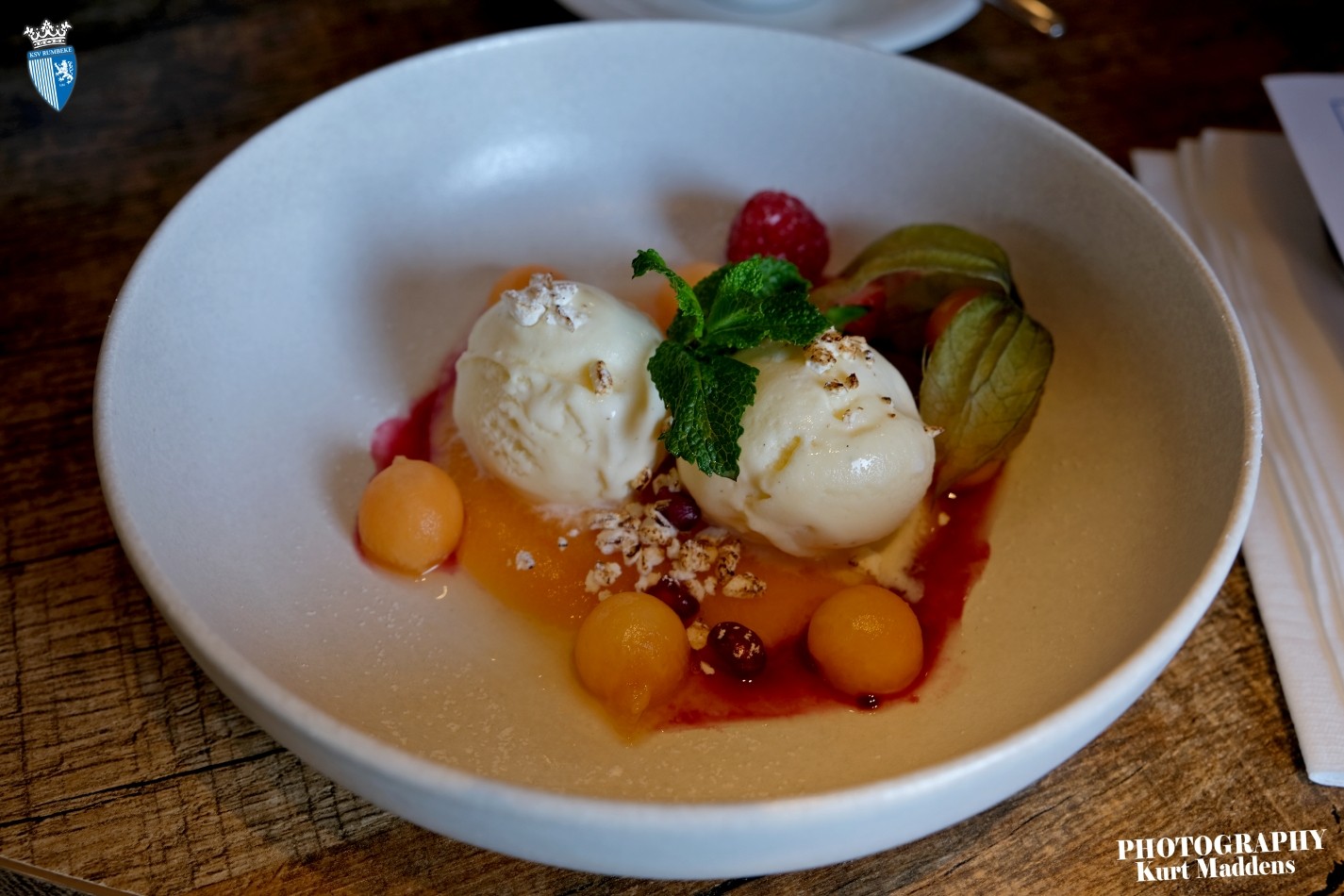 Het feestmaal kreeg nog een prachtig vervolg met een verfijnd dessert dat een waar kunstwerk op het bord was. In restaurant-zaal Orchidee is culinair genieten altijd gegarandeerd: pure klasse!