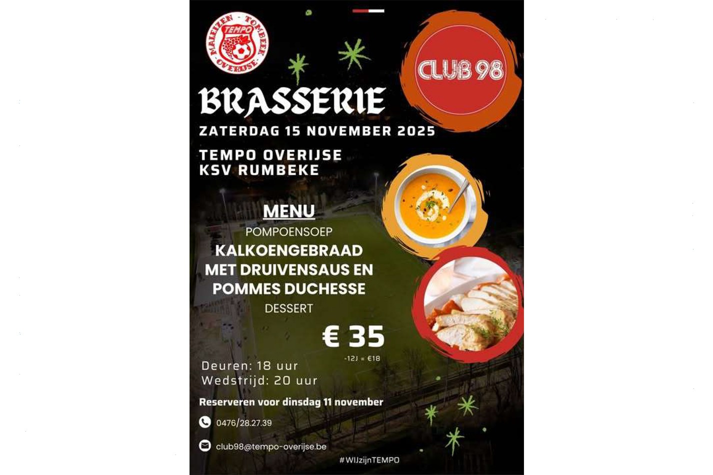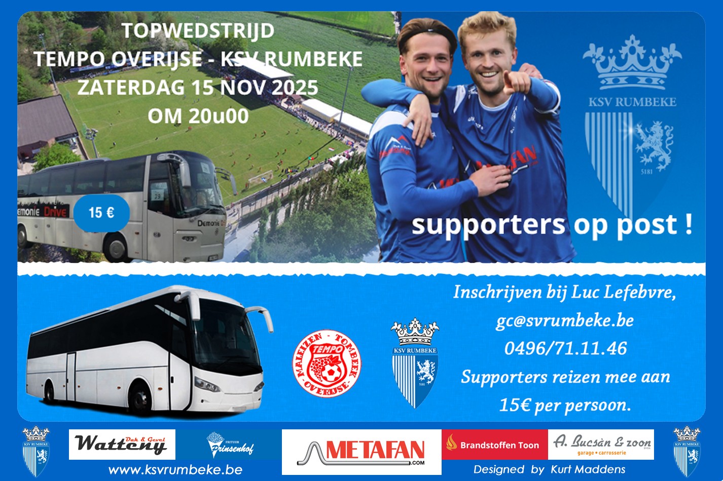 Inschrijven bij Luc Lefebvre via gc@svrumbeke.be of via 0496/71.11.46 Dit zowel mee gaan met de bus en voor de footlunch op Overijse inschrijven bij Luc Lefebvre.