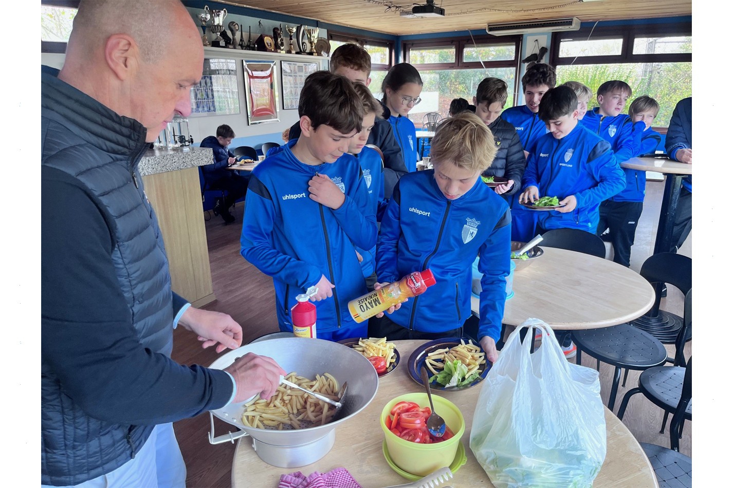 Na het klimmen trakteerden de trainers op heerlijke frietjes met stoofvlees of vol-au-vent in de VIP van Rumbeke.
