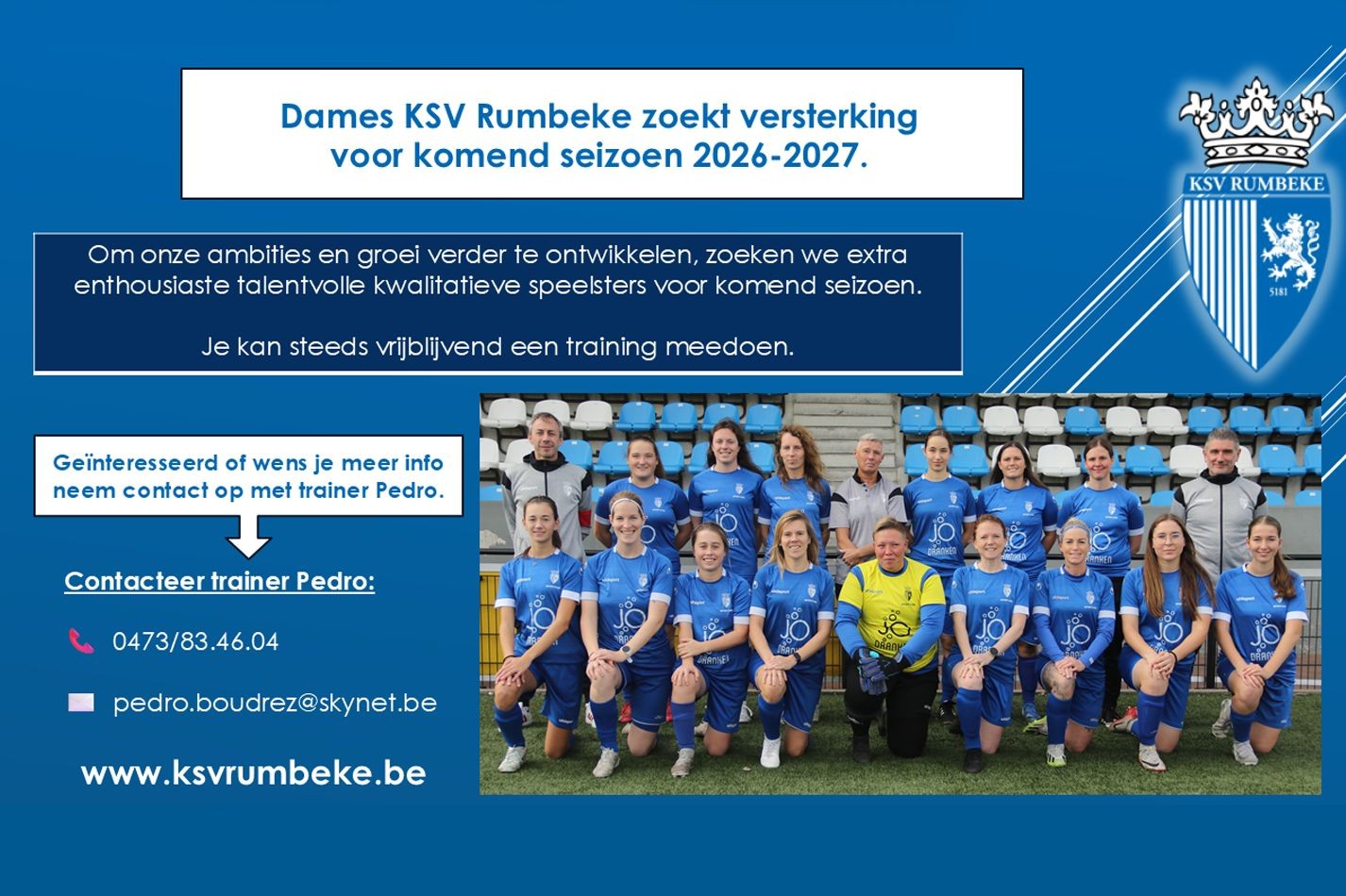 Dames KSV Rumbeke zoekt versterking voor komend seizoen 2026-2027.