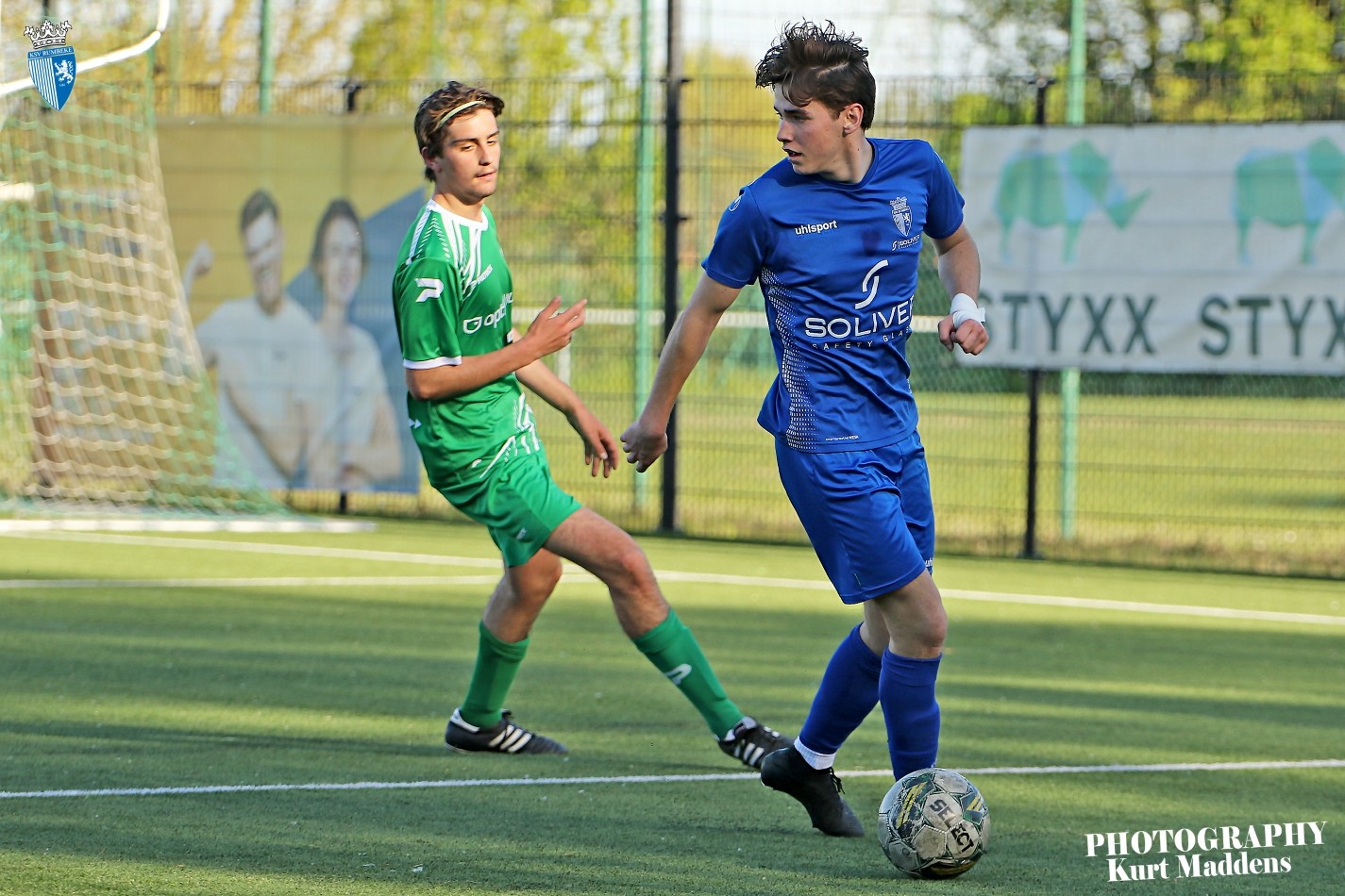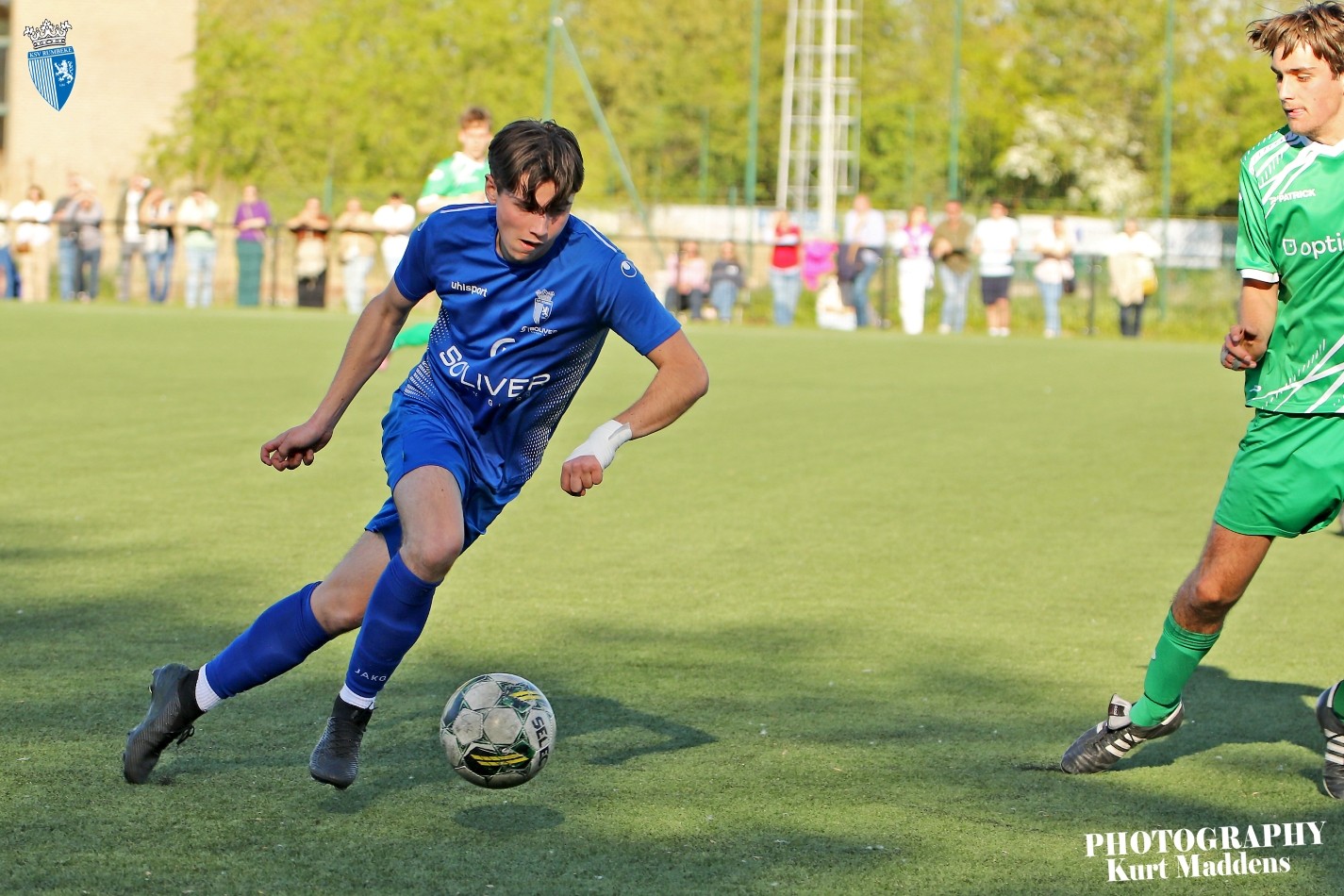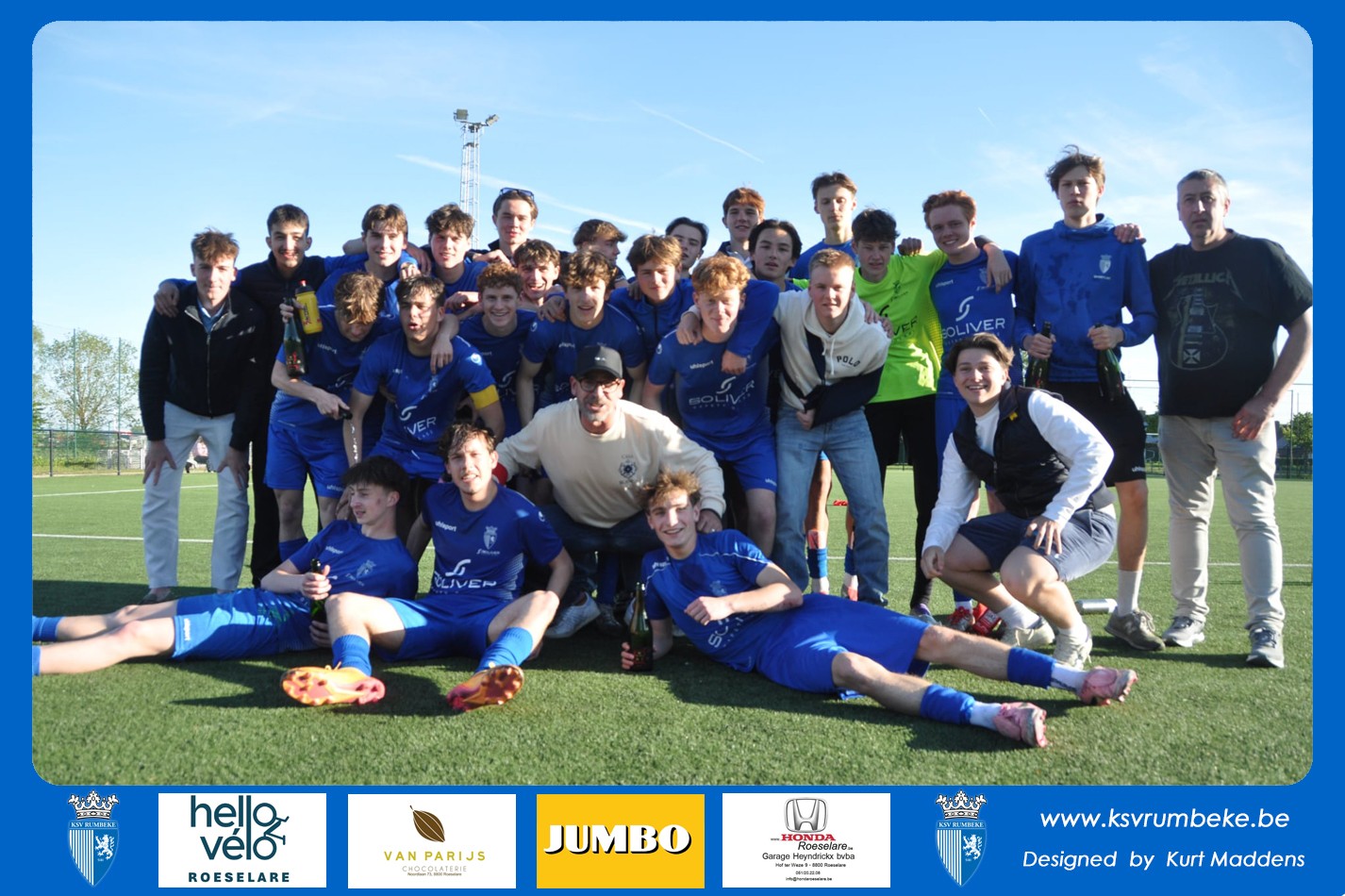 Robbe D. zag de doelman ver uit zijn doel staan en werkte knap af met een lob: 0-2. Een verdiende overwinning voor Rumbeke, dat hiermee niet alleen de derby wint, maar ook de titel veiligstelt.
