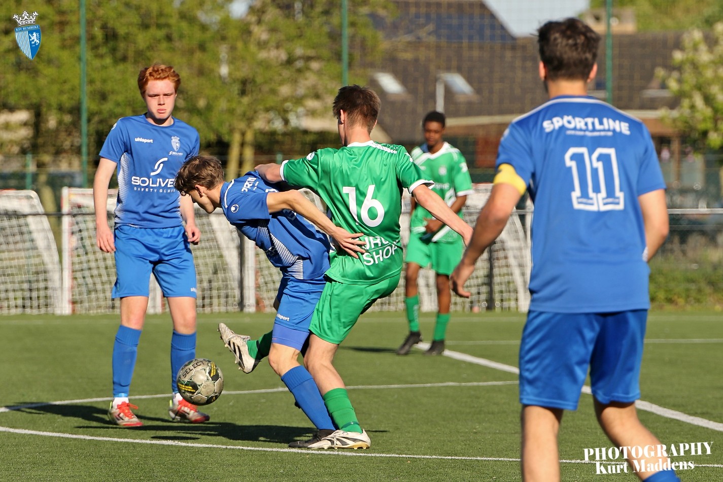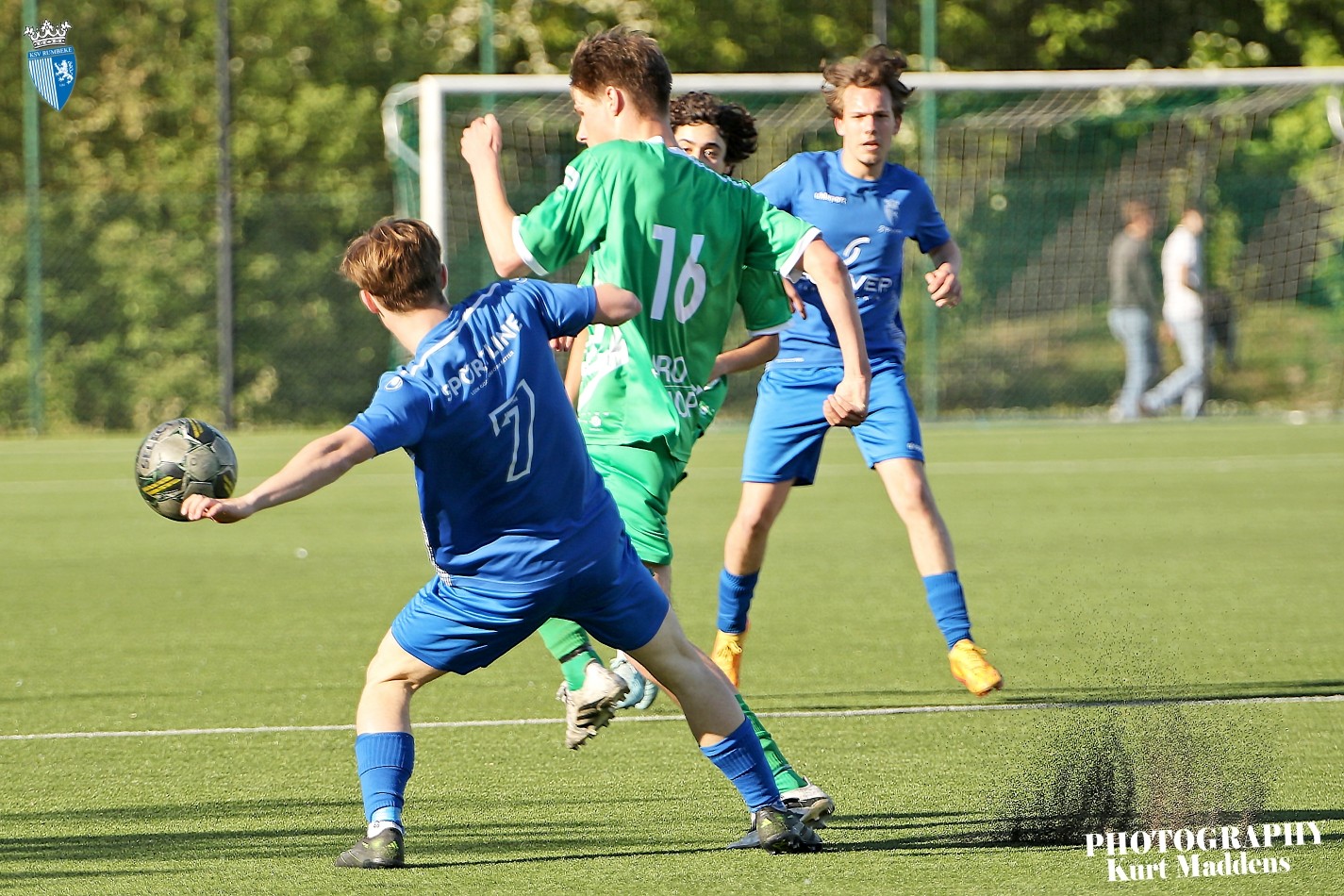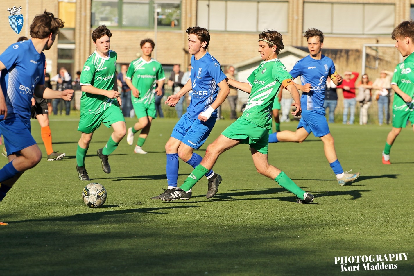 Robbe D. zag de doelman ver uit zijn doel staan en werkte knap af met een lob: 0-2. Een verdiende overwinning voor Rumbeke, dat hiermee niet alleen de derby wint, maar ook de titel veiligstelt.
