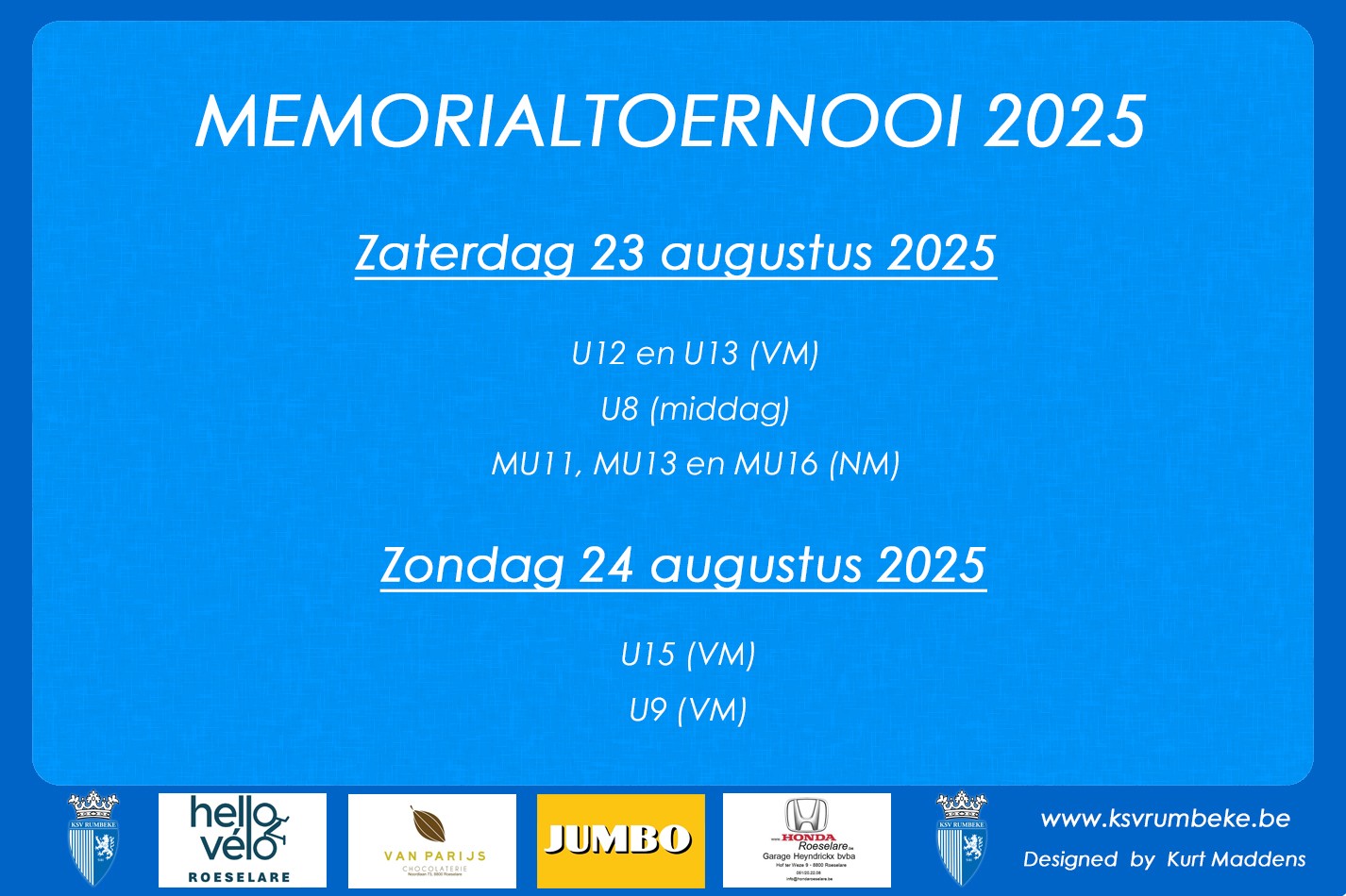 Memorial Toernooi 2025 ontvangt 58 deelnemende ploegen!!