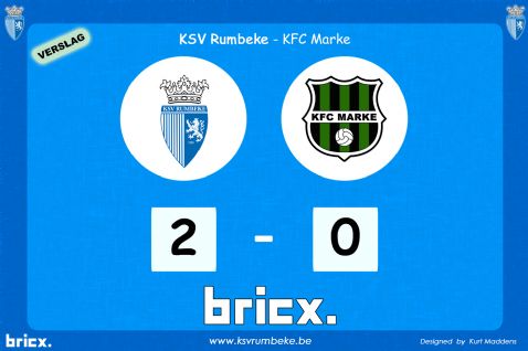 Bij het eerste fluitsignaal in de Rumbeekse Arena namen de Bricx-mannen, gecoacht door F. Schamp, het initiatief. Al in de vijfde minuut wist T. Timmerman de bal prachtig in het net te werken (1-0). KSVR nam zo snel de leiding en kon de wedstrijd controleren. De bezoekers echter, bleven moedig proberen de verdediging te doorbreken en onze keeper te passeren. Toch bleef het bij pogingen. KSVR daarentegen creëerde enkele gevaarlijke kansen, maar ging er in de afwerking nonchalant mee om. De doelman van de bezoekers hield zijn doel schoon. Naarmate de eerste helft vorderde, speelden we nonchalanter. Soms lieten we de deur op een kier, waardoor Marke kon profiteren, maar op cruciale momenten wisten we toch het tij te keren. We gingen de pauze in met een kleine voorsprong (1-0).