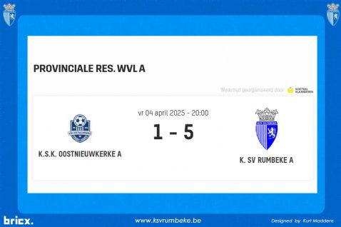 Volgende week vrijdagavond, op 11 april, ontvangen we KSV Jabbeke in het Rumbeekse Sportpark. Aftrap om 20u.