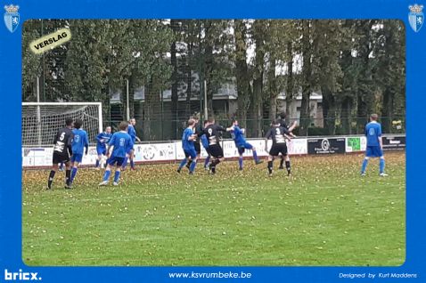 In de eerste minuut was er al een fikse waarschuwing op een hoekschop . De ref had echter al voor een overtreding gefloten voor de bal binnen getrapt werd. Het Rumbeekse antwoord liet niet lang op zich wachten: Kevin verstuurde een diepe bal naar Tom, maar deze werd in extremis nog afgeblokt. Beide ploegen bleven aan elkaar gewaagd, maar het was onze doelman die tot 2 keer toe al zijn kunnen moest etaleren. Eerst was er een knappe voorzet die haast perfect afgewerkt werd, maar nog perfecter uit de hoek gedoken werd, en in de daaropvolgende minuut was het weer alle hens aan dek, en kon Liano met de voet redding brengen. Ook Rumbeke zorgde voor doelgevaar , maar opnieuw was er pech mee gemoeid toen Tom na een actie van Jelle op de paal trapte. Rumbeke bleef nu de gevaarlijkste ploeg , en dat konden ze voor de rust nog omzetten in een dubbele voorsprong. Tweemaal was Tom de schutter van dienst, op aangeven van Dieter en daarna van Emiel. In de tweede periode kon onze verdediging , onder leiding van Gio C. en Kevin, makkelijk stand houden. Aarsele kon Liano nog 1 keer aan het werk zetten met een afstandsschot, maar deze was vast besloten om de nul op het bord te houden. Er was ook nog een kans voor Stefan, maar de stand wijzigde niet meer.