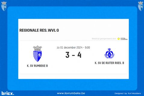 Rumbeke begon de 2e helft aan 100/u. Tom kende pech bij zijn kopbal, op een corner, maar Benito stond op de juiste plaats om de oververdiende gelijkmaker te scoren. De Rumbeekse honger was niet gestild, Daniel kon de 2-1 aantekenen. Kort daarop glipte De Ruiter door onze achterlinie, en het stond alweer gelijk. Voor de bezoekers waren alle middelen goed om ons af te stoppen, wat resulteerde in enkele gele kaarten. Bij een zeldzame tegenstoot verscheen een bezoekende spits , al dan niet in buitenspel , voor ons doel , en we mochten alweer achtervolgen. De Rumbeekse reactie liet niet lang op zich wachten. Na handspel in de zestien belandde de bal op de stip. Daniel volbracht zijn taak , en zette de 3-3 op het bord. Na een dubbele gele kaart voor een speler van De Ruiter, voelde Rumbeke dat hier zelfs nog kon gewonnen worden. Tom had echter nog maar eens pech, toen zijn gevaarlijke kopbal gered werd. En dat voetbal zeer onrechtvaardig kan zijn werd in de slotfase duidelijk, toen De Ruiter opnieuw op voorsprong kwam.