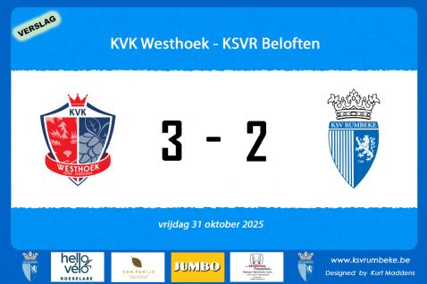 Vanaf het eerste fluitsignaal in het Crackstadion begon de thuisploeg dreigend, maar KSVR liet het niet zomaar gebeuren. Na een tijdje vonden we het juiste ritme en kwamen we beter in de wedstrijd. Beide ploegen creëerden kansen, maar echte doelpogingen bleven uit. Na een kwartier bleef het spel op en neer gaan. Beide teams maakten het elkaar moeilijk en gaven weinig weg. Westhoek kreeg enkele mogelijkheden, maar wist ze niet te benutten. In de 40ste minuut zette KSVR een mooie aanval op. B. Viaene werd diep gestuurd, zag dat M. Kibeya goed was gevolgd en legde de bal knap af. Kibeya twijfelde niet en knalde het leer heerlijk tegen de netten: 0-1. De thuisploeg nam geen vrede met de achterstand en bleef druk zetten op zowel onze defensie als onze doelman, maar we hielden stand. Kort voor de rust haalde Kibeya opnieuw uit, maar de doelman van Westhoek redde knap. We gingen de rust in met een minimale voorsprong van 0-1.