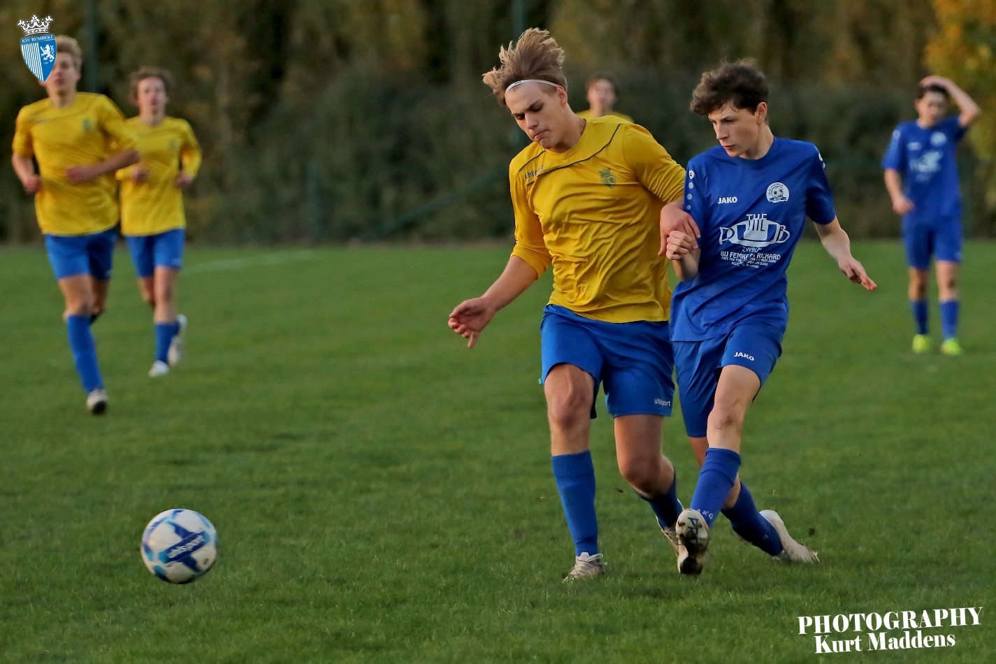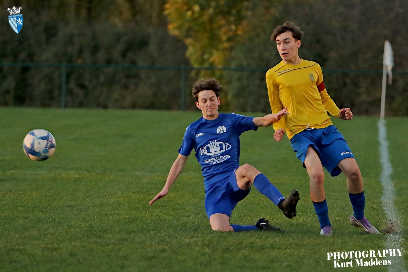 Vandaag trokken onze toppers opnieuw het veld op met één duidelijk doel: de eerste plaats verdedigen. De inzet was groot, maar we wisten op voorhand dat het geen gemakkelijke opdracht zou worden. De strijd werd immers gestreden op terrein 3, een veld waar mooi combinatievoetbal moeilijk te brengen is. Het gras stond wat lang, waardoor technische acties en vlotte combinaties vaak in het niets verdwenen. Dat speelde in de kaart van Munkzwalm, een ploeg die graag en vaak de lange bal hanteert.