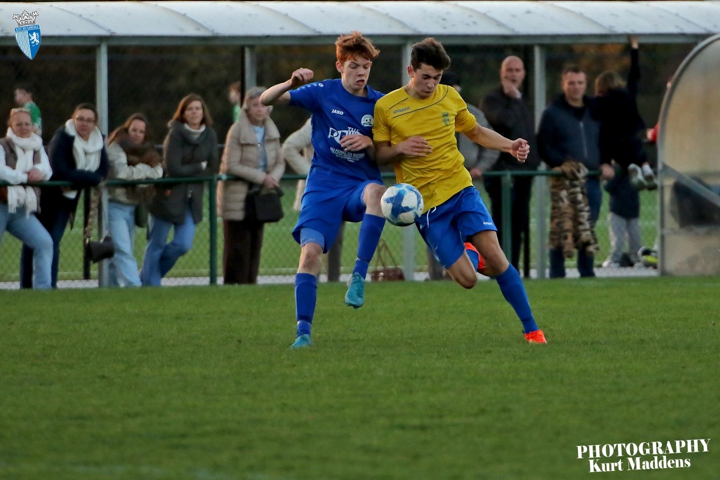 De wedstrijd begon wat stroef aan onze kant. We zaten niet meteen in ons ritme en na een kwartier spelen kwamen we 0-1 achter na een vrije trap waarbij de bal bleef hangen in de zestien. Gelukkig lieten we snel een reactie zien. In de 19e minuut kregen we zelf een vrije trap: Owen trapte hem strak voor en Loïc kopte de bal mooi binnen. Na 20 minuten stond het opnieuw gelijk: 1-1.